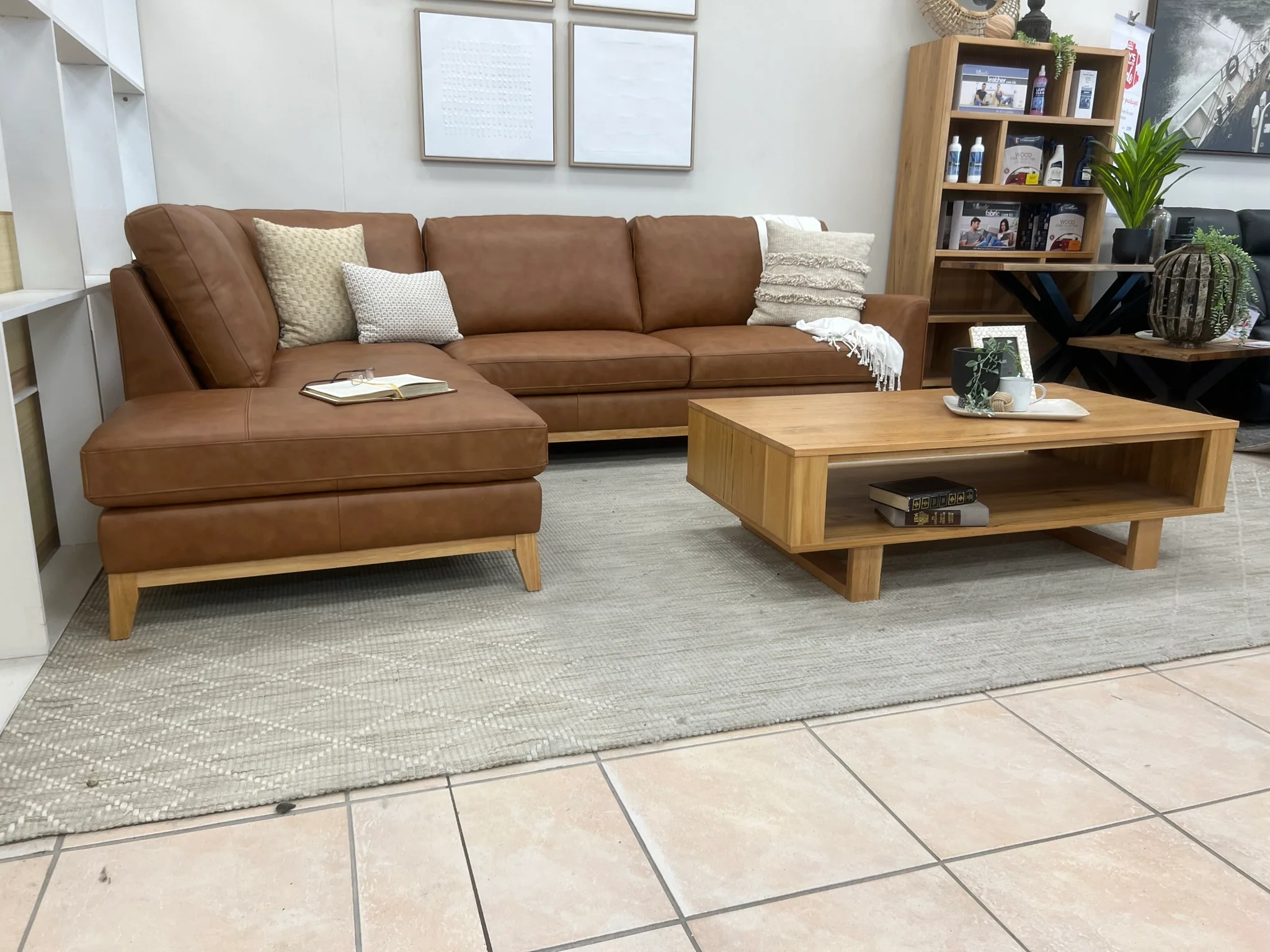 Indulge in luxurious sophistication with our Carson Chaise in 100% premium tan leather. Enjoy the option of a left or right chaise and admire the exquisite timber feature plinth that adds a touch of artistry to this exclusive piece. Surround yourself in pure opulence.