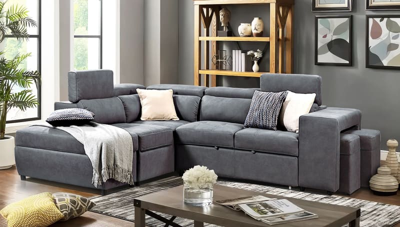 Hermes left chaise with sofabed in grey