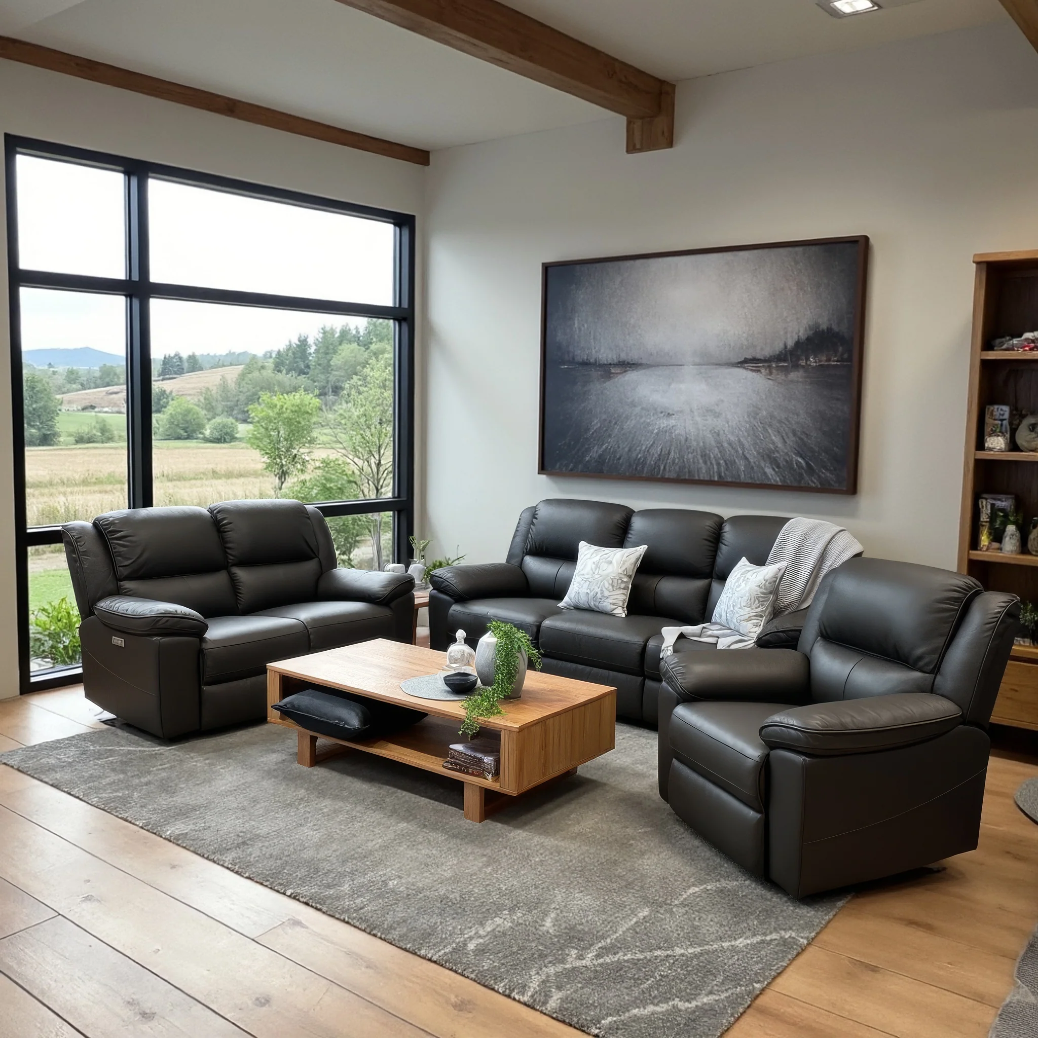 Michigan 100% leather 3+2+1 Recliner Package Black