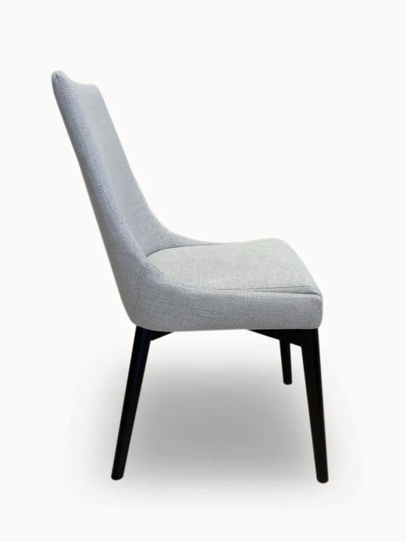 Our Milano dining chair is newest in dining fashion. With crisp clean lines and elegant curves, available in charcoal or silver upholstery. The Milano comes fully assembled and is glued and screwed for extra strength
