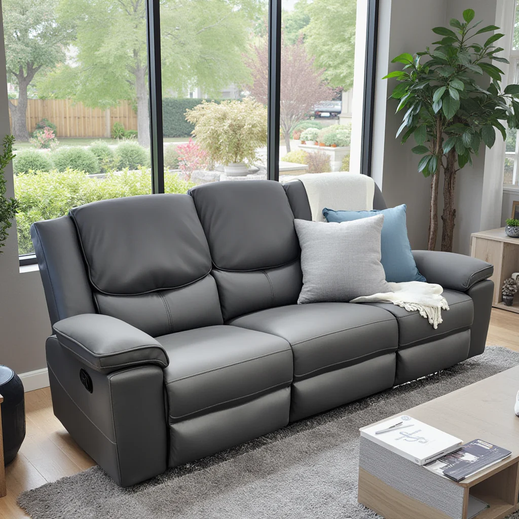 This Rawson 3 Seater Recliner in Grey offers ultimate comfort with its inbuilt recliners and high back support. Upholstered in durable and easy to clean next gen rhino suede, this 3 seater is perfect for any living space. Relax and unwind with this stylish and functional piece.