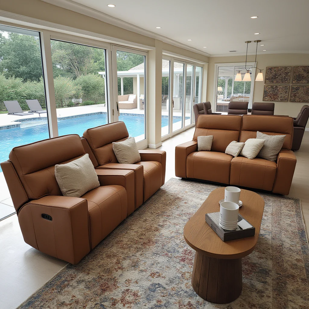 Rockville 2+1+1 Dual Motion Recliner Package in Vintage Tan Leather