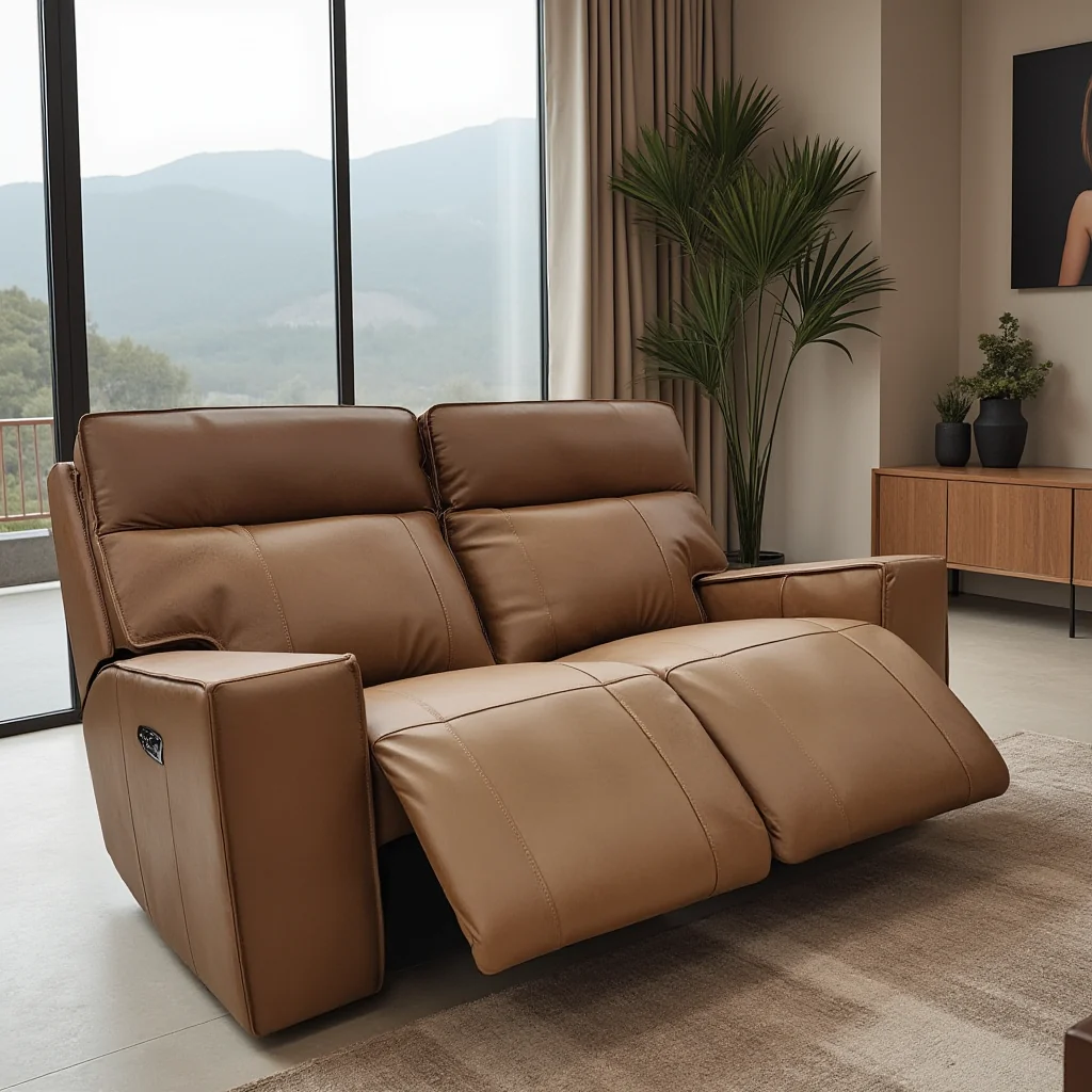Indulge in luxury with the Rockville 2 seater. Vintage tan leather adds a touch of class to any room. Dual electric recliners take relaxation to the next level. Available in black or light grey. Live like a boss in comfort and style!