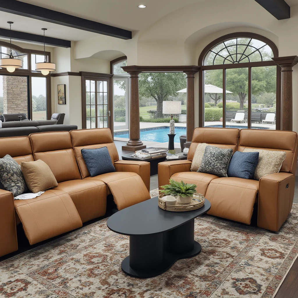 Rockville 3+2 Dual Motion Recliner Package in Vintage Tan Leather